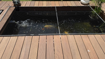 We secured our pond with this custom-made net! It looks great and the black color makes the cover look very classy and protects our koi from herons! We can also let our grandchildren play in the garden without worry.