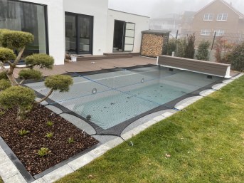We use the net to cover our swimming pool in the winter. The net is very stable and, when properly secured, ensures that no leaves, animals or children can fall into the pool. The custom production is great and delivery was quick. We would order it again anytime! translated, original text: "Wir verwenden das Netz zur Winterabdeckung unseres Schwimmbeckens. Das Netz ist sehr stabil und sorgt richtig befestigt dafür, das weder Laub, Tiere oder Kinder ins Becken fallen können. Die Fertigung auf Maß ist super und die Lieferung ging schnell. Wir würden es jederzeit wieder bestellen!"