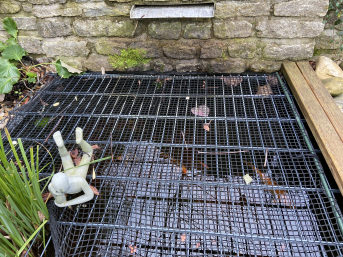 Pond net to cover against the leaves of our walnut tree, which produce too much tannin in the water. translated, original text: "Weihernetz zum Abdecken gegen die Blätter unseres Baumnussbaums, die im Wasser zuviel Gerbsäure produzieren."