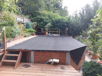 Now we just have to wait for winter. translated, original text: "Poolabdeckung