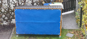 The tarpaulin is exactly as we imagined and fits perfectly. We are very happy with the design. The quality and workmanship are very good. Ordering online was very easy and the delivery arrived on the promised date. We will definitely order again if we need another tarpaulin. translated, original text: "Die Schutzplane ist genauso, wie wir uns das vorgestellt haben und passt genau. Wir sind sehr zufrieden mit der Ausführung. Die Qualität und die Verarbeitung sind sehr gut. Die Bestellung im Internet war sehr einfach und die Lieferung kam zum angekündigten Zeitpunkt. Wir werden sicher wieder bestellen, sollten wir noch eine Plane brauchen."