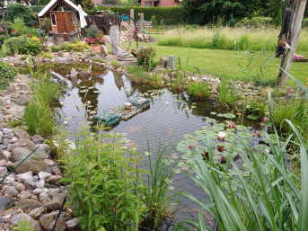 We have a small raised pond with goldfish and a heron in the neighborhood, they don't get along well, but the net helps translated, original text: "Wir haben einen kleinen Hochteich mit Goldfischen und einen Reiher in der Nachbarschaft, das verträgt sich nicht gut, das Netz hilft aber"