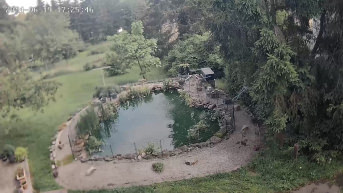 Thanks to the net, the trout in the ponds can be permanently protected from the herons. translated, original text: "Reiher Schutznetz über Forellenteiche!
