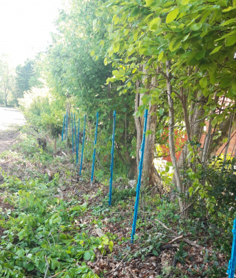 Da wir direkt an einem Acker mit angrenzenden Waldstück wohnen, aber nicht die Möglichkeit haben einen festen Zaun aufzustellen.