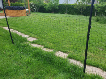 The net is used to protect our chickens from birds of prey. The quality of the net supplied makes a very good impression. It is ideally designed in terms of its construction: small enough to keep birds of prey out, but at the same time so permeable that snowfall, frost and storms do not cause any problems! Due to the good workmanship, it was quick to assemble and could be tensioned evenly in all directions. Highly recommended! translated, original text: "Das Netz ist eingesetzt zum Schutz unserer Hühner vor Raubvögeln. Die Qualität des gelieferten Netzes erweckt einen sehr guten Eindruck. Es ist ideal konzipiert bezüglich des Aufbau's: So kleinformatig, dass Raubvögel sicher abgehalten werden, gleichzeitig so durchlässig, dass Schneefall, Raureif und Sturm nicht stören! Aufgrund der guten Verarbeitung war es schnell zu montieren und konnte in alle Richtungen gleichmäßig abgespannt werden. Sehr empfehlenswert!"