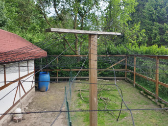 We stretched the net over the run to protect our chicks from birds of prey. translated, original text: "Das Netz haben wir zum Schutz unserer Küken vor Greifvögeln über den Auslauf gespannt."