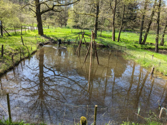 Dank des Netzes können die Forellen in den Teichen dauerhaft von den Reihern geschützt werden."