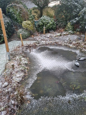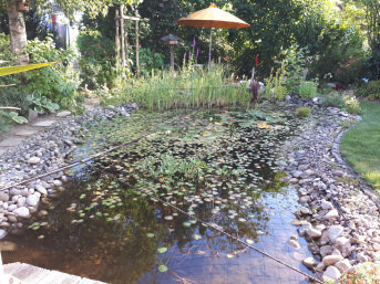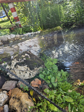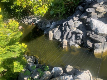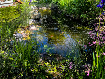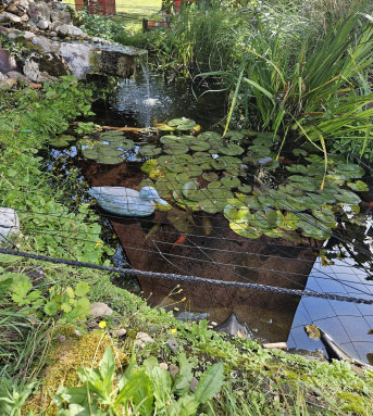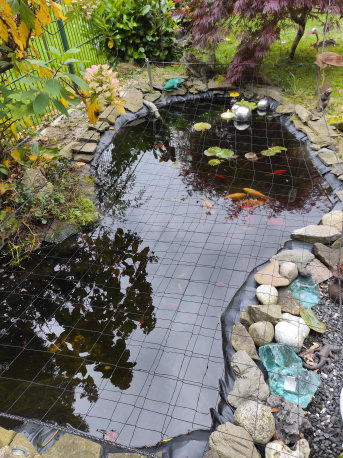 We are very happy with the net and hope that it will last a few years. translated, original text: "Das Schutznetz haben wir im Mai über unseren (Mini-)Teich gespannt.