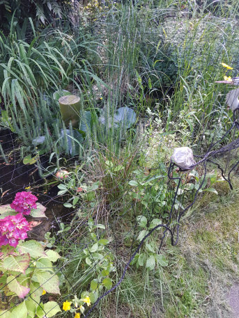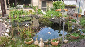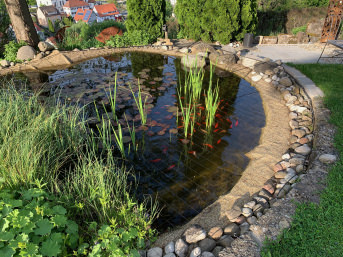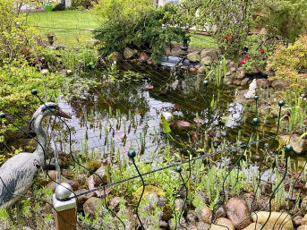Jetzt habe ich dauerhaft das Reiherproblem. Da ich Rentner bin setze ich mich an meinen sehr großen Teich von 8x7 m und verscheuche meinen ärgsten FEIND am Teich.