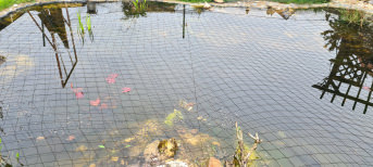 Das Netz passt perfekt und durch seine schwarze Farbe fällt es am Teich kaum auf.